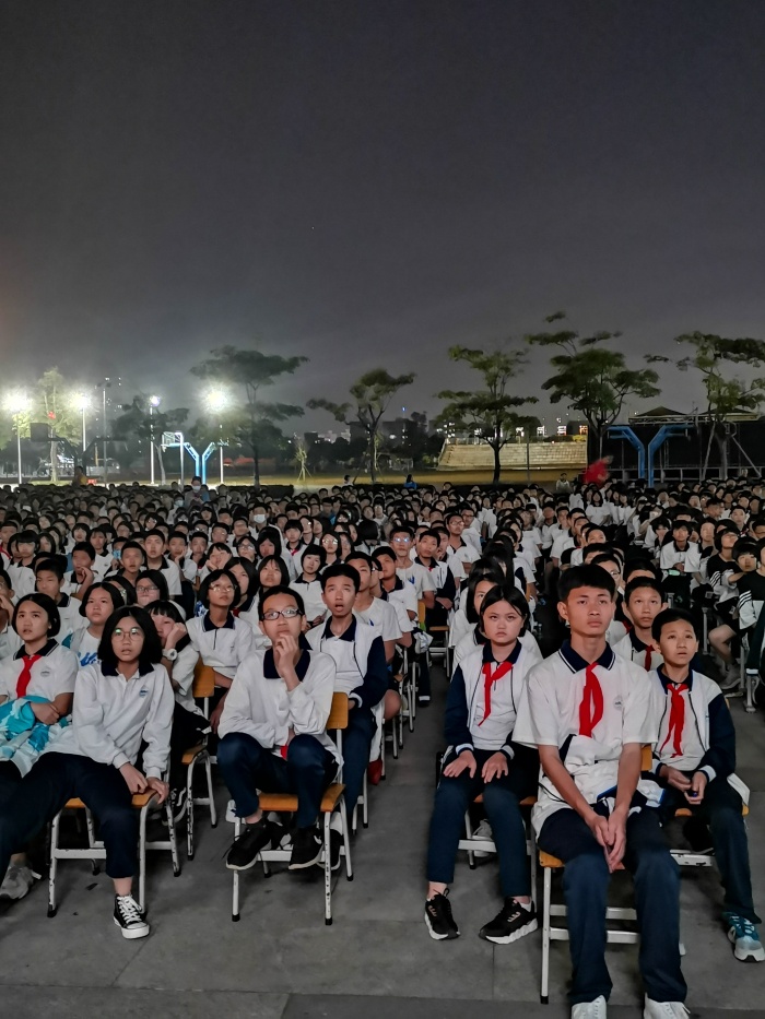 为加强爱国主义教育,激发学生爱国主义情感,丰富校园文化生活,11月19日晚上,吴剑文校长、黄金丽副校长带领全校1800多名师生,观看爱国主义电影《八佰》。