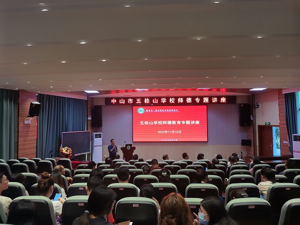 为深入贯彻习近平新时代中国特色社会主义思想,认真落实全国教育大会精神,进一步推进学校师德师风建设工作,打造作风过硬、师德高尚的教师队伍,树立严格自律、爱岗敬业、为人师表的良好教师形象,11月10日下午,五桂山学校在综合报告厅开展一场别开生面的师德师风建设讲座。