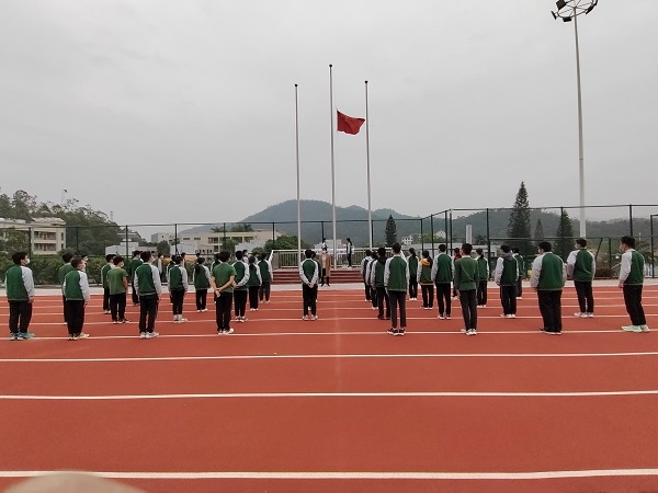 12月13日,是祭奠南京大屠杀30万死难同胞的特殊日子,被定为中华人民共和国国家公祭日。在此具有特殊含义的日子中,五桂山学校开展了一场特别的爱国主义教育——国家公祭日祭奠活动。国旗队队员迈着标准的慢正步,在所有人的注目礼中,将国旗缓缓升到旗杆顶端,在庄严的降半旗口令下缓缓降下三分之一。