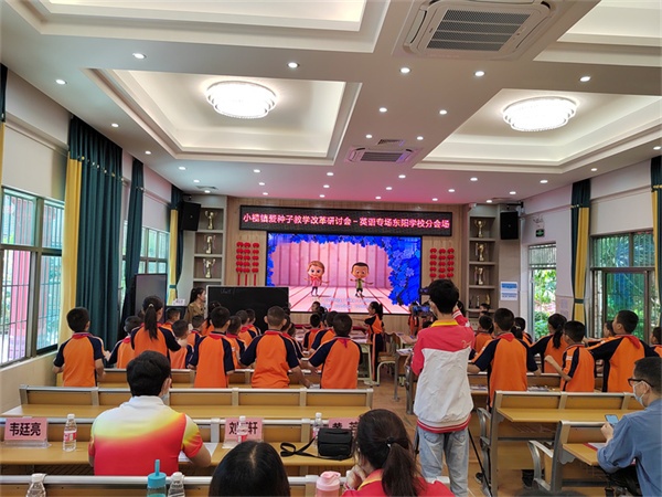 阳光灿烂彤彤日,春和景明淡淡风。为进一步推进“爱种子”教学模式进课堂,深化互联网环境下教育教学改革实验,4月14日上午小榄镇“爱种子”英语课堂教学改革研讨会在东阳学校举行。小榄镇教育和体育事务指导中心李良章校长、中山市爱种子项目经理林柳光先生、东阳学校刘万轩校长、爱种子领教员利生小学邬洁慧老师参加了本次活动。由于疫情原因,本次活动还采用企业微信进行直播,分享给不能到达现场的老师观看。