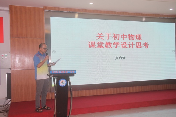 在活动中,物理科麦启焕老师以《关于初中物理课堂教学设计思考》为题,阐述了物理教学设计的内在逻辑,包括教学内容分析、学习情况分析、核心素养培养规划、教学评价设计等;提出了进行教学设计的基本方法,如钻研课标、挖掘教材,应优化设计、环环相扣等。