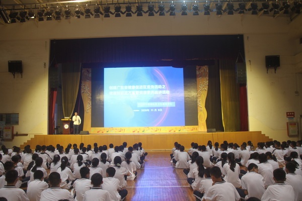 在开展创建广东省健康促进区宣传活动之际,2020年11月9日,小榄镇第一中学组织师生们在体育馆举行了“健康知识进万家暨健康素养巡讲活动”。活动由学校张玉良副主任主持,小榄镇社区卫生服务中心东区卫生站谭德添站长以“新时代文明实践系列活动”为主题,为师生们作关于健康素养的讲座,宣传相关的基本知识和理念。