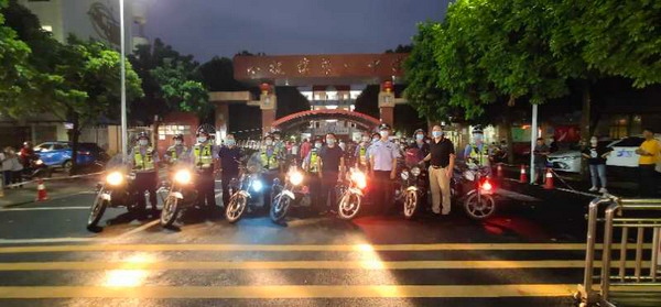 为营造校园周边良好的社会氛围,保护学生不受伤害,营造“平安、和谐”的校园环境,2020年9月30日傍晚,小榄一中陈源斌副校长、张玉良副主任、李江副主任、陈群级长等德育线干部,在校门口与升平派出所驻校警官欧浩友警长带领的警员汇合,然后分乘摩托车,对学校周边环境进行拉网式巡查,重点是周边饮食店铺及社区公共场所。