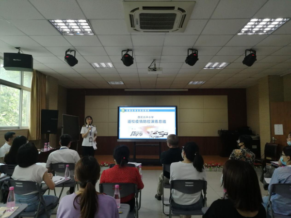 严格审核,不断修正。在复学演练过程中,西区昌平小学李英明校长亲自上阵,手握喇叭,对活动细节进行多次指挥和调度。“同学们,排队注意前后左右保持一米距离……”为了让模拟的老师尽快熟知防疫流程,李校长的声音不断在演练上空回响。模拟学生的老师们也勤学好问,从活动前的培训学习,到模拟演练的实战活动,都保持高涨的热情,全神贯注听从指挥和投入演练活动,做到精准模拟,成竹于胸。作为本次活动的专业指导力量,区卫健局郭颖校长担任演练最严“考官”,严格审核入校、进班、上课、用餐等每个环节,并当场指出存在的问题,修正后进行重新演练。演练完毕,上级领导对该校的整个演练活动过程和效果作出充分肯定。