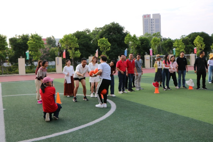 此次的趣味运动会共设3个活动项目,一是“团结一致——企鹅漫步”,二是“齐头并进——旋风跑”,三是“众志成城——托球迎面接力赛”。虽已入秋,但老师们运动的热情丝毫未减。