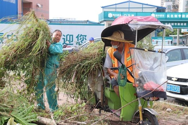 同样顶着烈日工作的还有一群年轻的女教师。她们头戴草帽,手拿工具,或扫或捡,虽然脸晒得通红,仍一丝不苟做着力所能及的事情,为创文添彩。