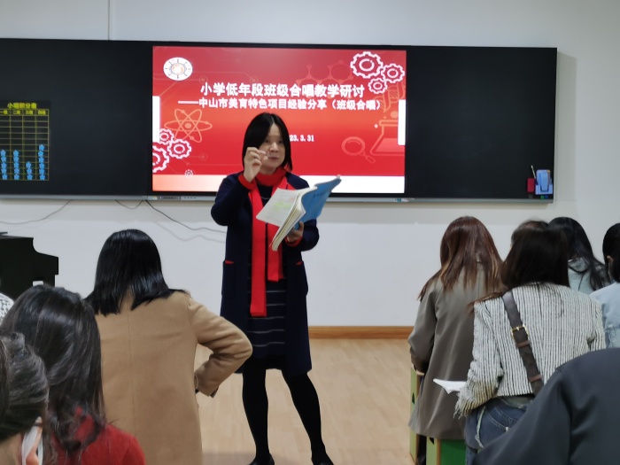 2023年3月31日下午,中山市中小学音乐新教师培训活动在西区烟洲小学举行。本次新教师培训活动主题为“美育特色项目——班级合唱经验分享”,由中山市教师发展中心主办,西区烟洲小学承办,全市中小学2021级音乐新教师参与活动,观摩学习。
