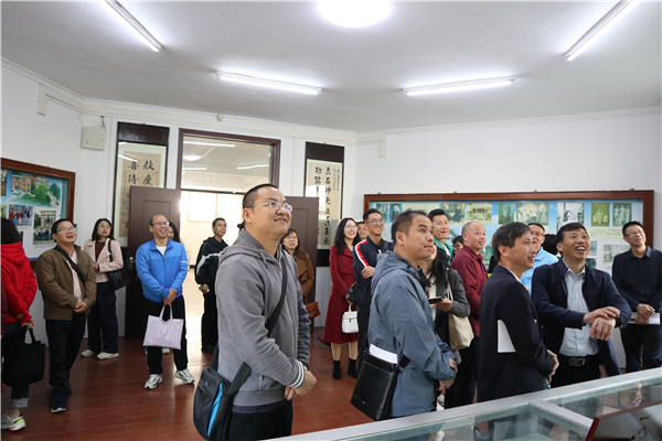 交流团一行先后参观了程度纯馆、将军纪念室、退役歼五战机、西林山航空文化园、芳华亭、百草园和宿舍、饭堂等校舍设施,实地感受学校厚重的历史底蕴、优美的校园环境和鲜明的办学特色。为了加深大家对我校历史与文化的了解,刘校长结合特色景点,向大家介绍了仙中的发展历史、办学情况、校园文化建设等方面情况。