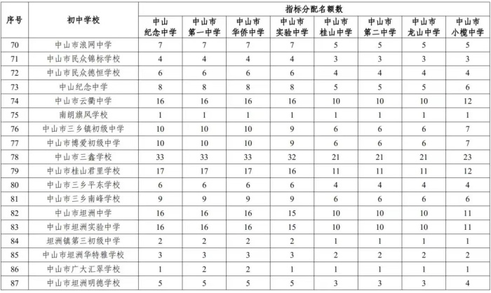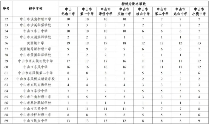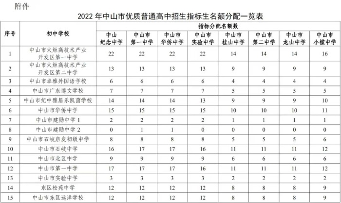 中山市教育和体育局关于公布2022年优质普通高中指标生招生计划的通知
