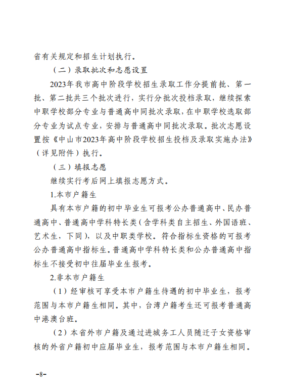 附件:2023中教体8-关于印发《中山市2023年高中阶段学校考试招生工作方案》的通知.pdf