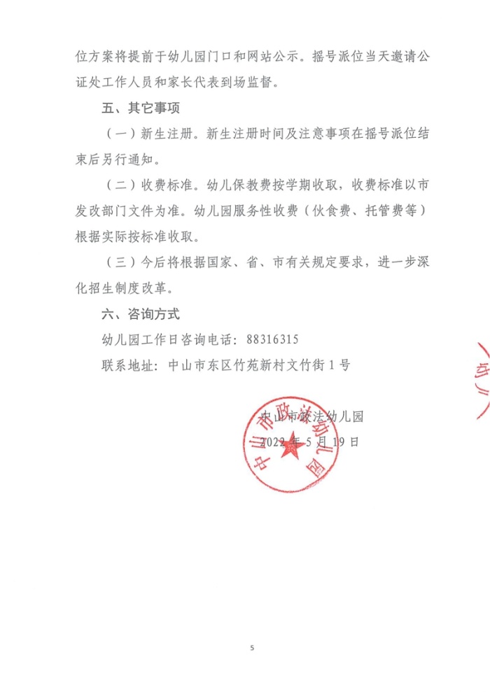 2022年秋季学期中山市政法幼儿园招生简章