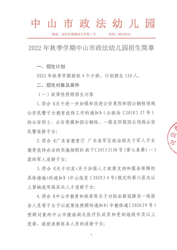2022年秋季学期中山市政法幼儿园招生简章.pdf