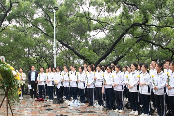 2023年3月31日下午,中山二中40余名优秀团学干部在校党委委员、德育处主任李灿泽老师,第四党支部书记冼春明老师、校团委书记汤秀兰老师、高一年级团总支书记冯澳文老师和团委陈晓琳老师的带领下,徒步赴黄圃镇花果山革命烈士陵园祭奠革命英烈。