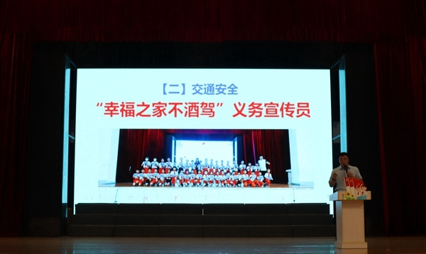 随后,各个班级的代表上台接受“幸福之家不酒驾”反酒驾义务宣传员聘书,合影留念。