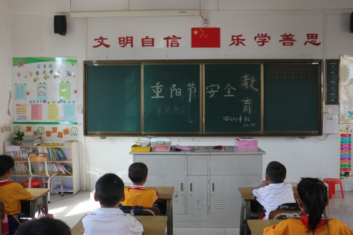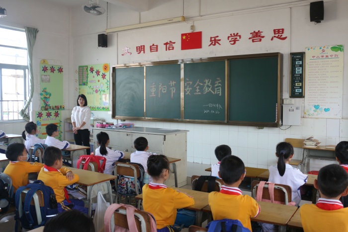 金秋十月,丹桂飘香,中国一年一度的传统节日重阳节,就要来到了。尊老敬老是星空体育中华民族的优良传统,弘扬这一传统美德的同时,安全工作仍然是学校工作的重中之重,2020年10月23日课间操时间,南朗小学利用广播进行重阳节安全教育,全体学生在班主任的组织下认真倾听,各班提前在黑板上写上主题词“重阳节安全教育”。