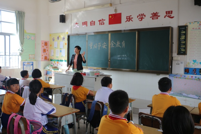 接着,各班主任组织学生学习重阳节的传统知识以及强调安全教育方面的相关知识,倡导同学们要将安全放在首要位置,特别提醒同学们秋天气候干燥,火灾多发,在登高的时候注意防火安全,切忌随意丢弃火种。同学们也纷纷谈了自己的见解,对重阳节安全深入讨论,强化了自身对于安全知识的认识。