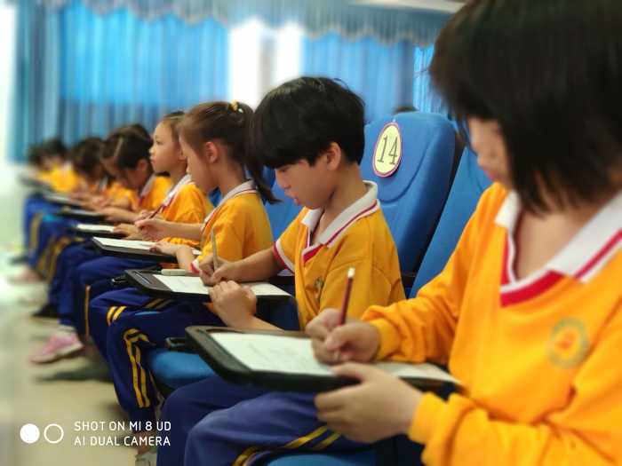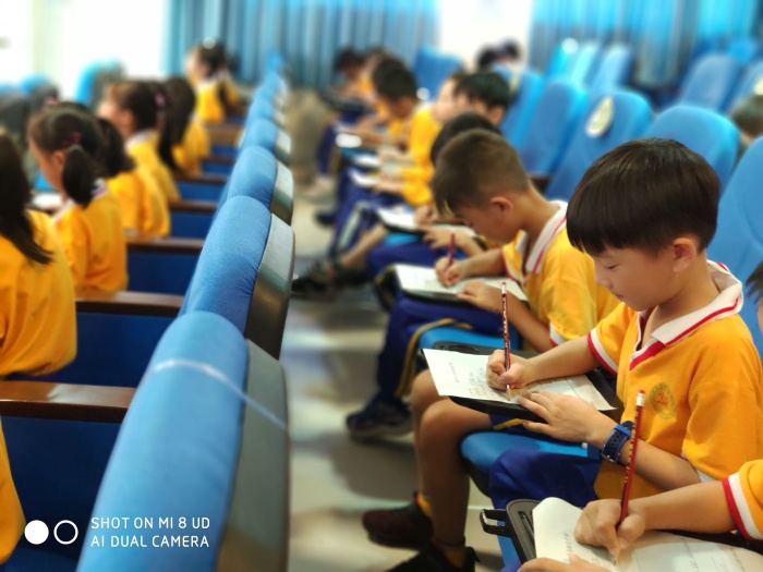 活动伊始,大队部辅导员林舒敏老师通过短视频,让同学们初步了解少先队的相关知识。接着,林老师针对“六知六会一做”展开,让各预备队员复习回顾少先队队名、创立者和领导者;知道队旗、队徽含义;知道少先队的标志和作风。会戴红领巾、敬队礼、会呼号、会唱队歌以及会背诵入队誓词。预备队员们全神贯注,认真聆听辅导员的讲解,最后,林舒敏老师进行现场队知识小考核,二年级的同学们一笔一划认真书写着,最后交上满意的“答卷”。