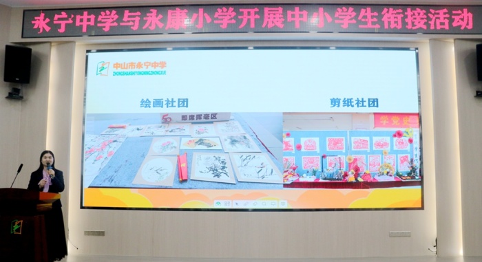 参观校园后,师生们齐聚报告厅进行专题分享。首先,由永宁中学陈清茂校长致欢迎辞。希望孩子们通过参观学习,了解初中学校和初中学习生活,为即将步入初中生涯奠定基础,少一份茫然与无措,多一份从容与信心。接着,学生们观看了永中校庆宣传片,罗结晶副主任介绍了学校概况、办学理念、办学特色,以及初中学习和校园生活等,同学们通过走、看、听、闻等亲身体验感受,对永宁中学有了更加全面更加深入地了解,同学们纷纷表示更加向往永中,期待升上初中。最后,永康小学叶凌燕主任感谢永中提供了本次参加交流的机会,让同学们亲身感受和体验即将开始的初中生活,肯定了此次衔接活动的深远意义。
