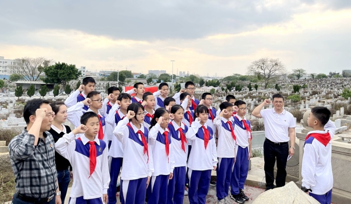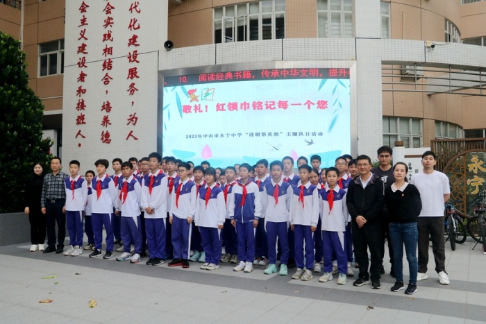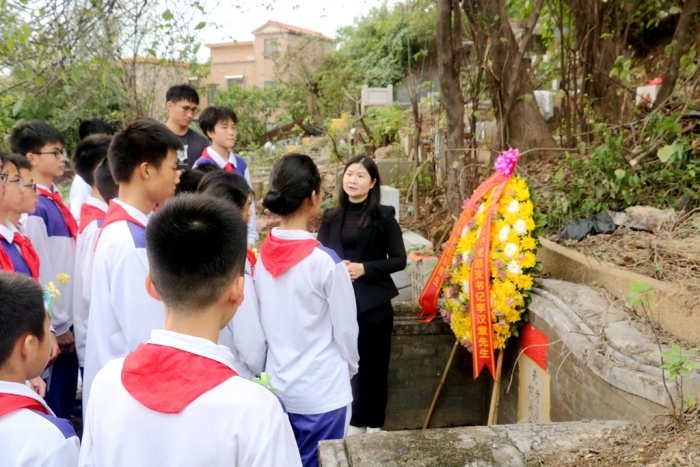 风儿声声,松涛阵阵,说不尽对家乡先贤的无限深情,道不尽对家乡先贤的无尽哀思。为缅怀家乡先贤,继承先贤的光荣传统,弘扬爱乡爱国主义精神,2023年4月4日下午,永宁中学陈清茂校长、德育处戴放良主任、罗结晶副主任、初一年级级长何健君老师、团委陈焕然副书记、范顺登委员、钟燕老师以及初一年级各班少先队员代表近60人前往永宁大榄岗,为永宁乡前党支部书记李汉章先生和永宁中学名誉校长麦克贞先生扫墓。