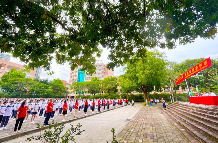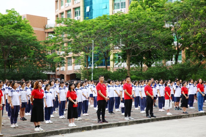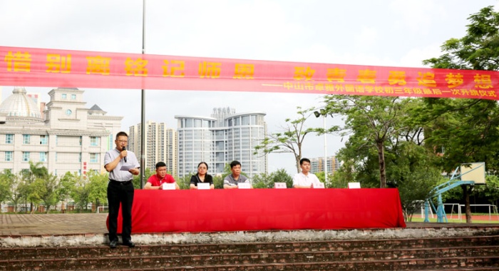 卓雅外校校长李雄杰、副校长兼初中部校长李文、初中部副校长韩瑞云、艺体中心主任方学军、初中部学生处主任邹旭、团委书记李凌霄及初中部全体师生参加升旗仪式。