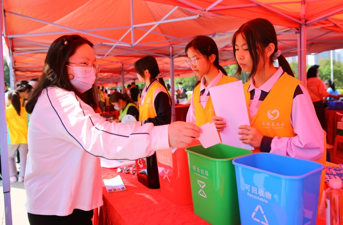 卓雅外校团委书记李凌霄担任此次活动的主持人,她介绍说,3月5日是第60个学雷锋纪念日,组织学生志愿者在便民服务摊位协助开展“垃圾分类”、“美丽河涌”志愿服务,是为了让同学们以实际行动学习和践行雷锋精神,弘扬志愿精神,丰富志愿服务形式,增强青年团员的贡献意识。