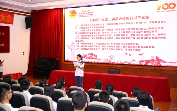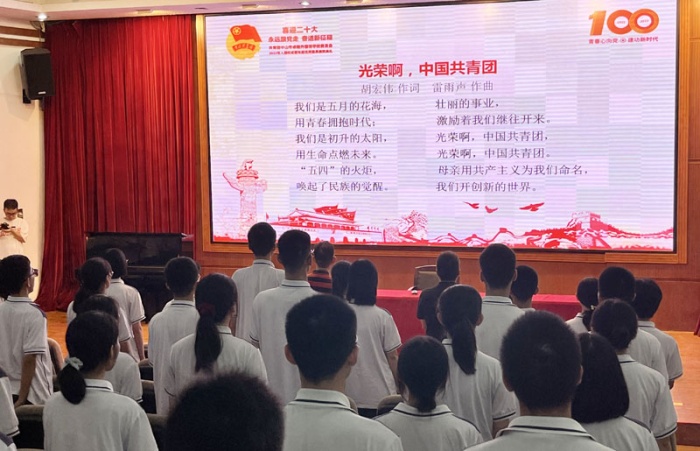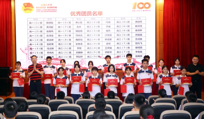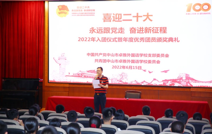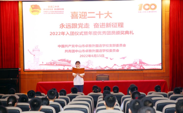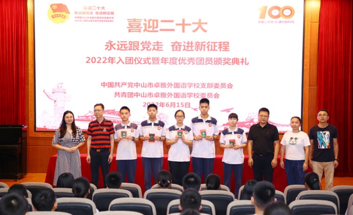 为贯彻落实习近平总书记在庆祝中国共产主义青年团成立100周年大会上的重要讲话精神,聚焦抓好党的事业后继有人这个根本大计,6月15日晚,卓雅外校举行共青团入团仪式暨优秀团员表彰大会,胡蓉、李钰妍等44名同学加入中国共产主义青年团,张家盈、周江涵等44名优秀团员受表彰。