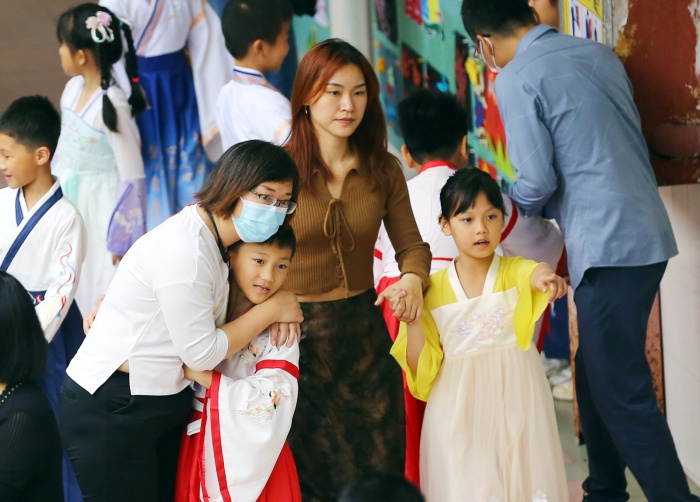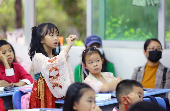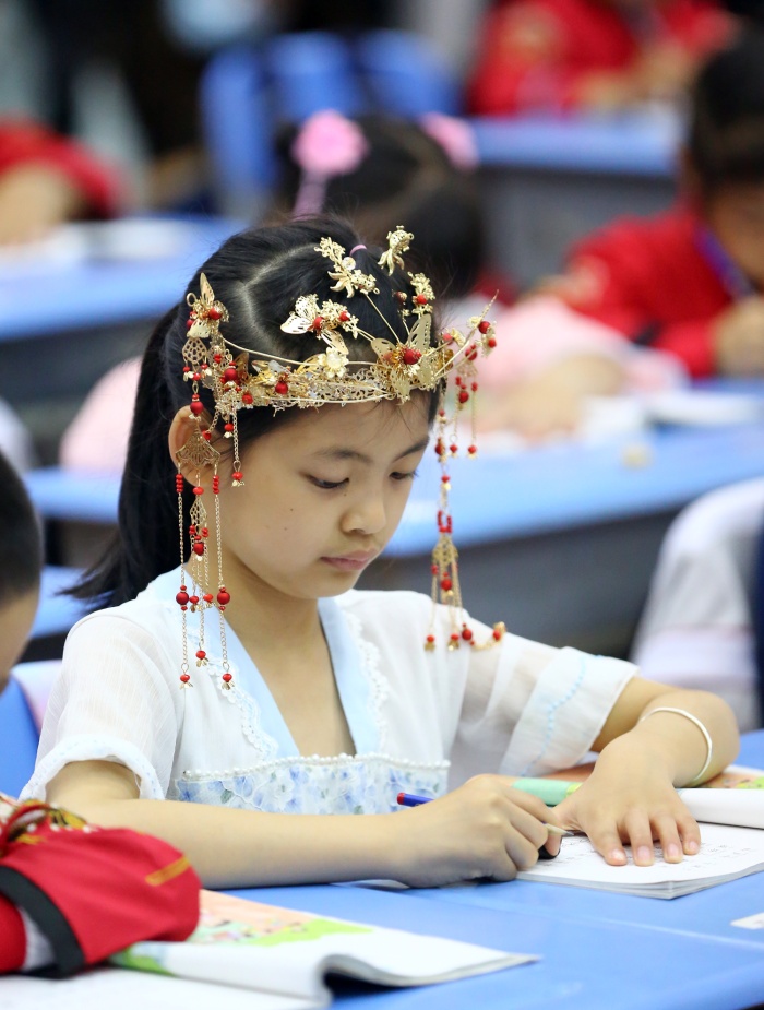 在第二届传统文化暨读书节展示活动中,一二三年级的同学们表演了课本剧《荷叶圆圆》,一同齐诵《弟子规》、汉乐府诗歌《江南》,在优美的古诗词中感受阅读的乐趣。展示活动后,同学们与爸爸妈妈一起参与到游园活动中,“甲骨文里寻始祖”“脑筋运转谜底见”“你演我猜合作乐”“汉字啄木鸟”“正中靶心”等游戏摊位前排满了摩拳擦掌的小朋友。“各类小游戏基本上都和传统文化有关联,踢毽子、射箭、打陀螺、踩高跷等等,孩子们穿着漂亮的传统服饰跑来跑去热情参与,我感受到了他们的快乐。”一年级林子阳的爸爸说,卓雅“活动育人”的理念在开放日活动中有了很好的体现,同学们在收获快乐的同时也学到了知识。
