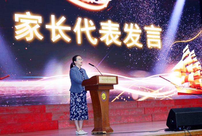 家长代表梁晓鸿女士告诉同学们,人生难得几回搏,这个是你人生的第一博,老师和家长是你们最坚强的后盾,希望你们能调整心态,正视压力,不怕困难,持之以恒,迎难而上,只要大家勇敢冲刺,全力以赴,就能取得胜利,考到心中的理想高中。