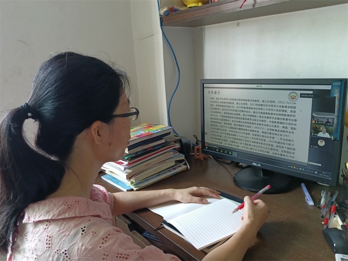 相聚云端,携手共研。根据当前疫情防控形势要求,本次培训采用线上直播学习的形式进行。讲座中,邓教授从随班就读与融合教育、新时代我国适宜的融合教育本土模式的形成与内涵、新时代我国适宜的融合教育本土模式的实践特点和发展方向、“十四五”特殊教育发展提升行动计划解读等方面进行讲解。他从随班就读谈到融合教育,从保障残障学生的入学率到致力于为每一个孩子提供高质量的教育服务,回顾和梳理了我国随班就读工作发展至今的历程,让参训教师明白了为每个特殊儿童提供公平、高质量的教育机会以及构建完整融合教育支持体系的必要性和重要性。在讲解的过程中,邓老师结合具体实践案例进行解析,语言生动形象,对特殊儿童行为管理的原则等进行深入浅出的分析并提出问题解决策略,给予学员们很多启发;他对中山市的融合教育氛围深表肯定,在分享中山“做一个有温度的教育者”、“让每一个孩子都有机会站在舞台的中央”等优秀实践案例时,寄语老师们要有责任心、良心、爱心、耐心和奉献心,提出了“负面的问题要用正向的方法解决”、“好的教育方法是通用的”、“融合教育要注重社会交往”等要点。教师们认真倾听、专心做笔记并在评论区积极发言!