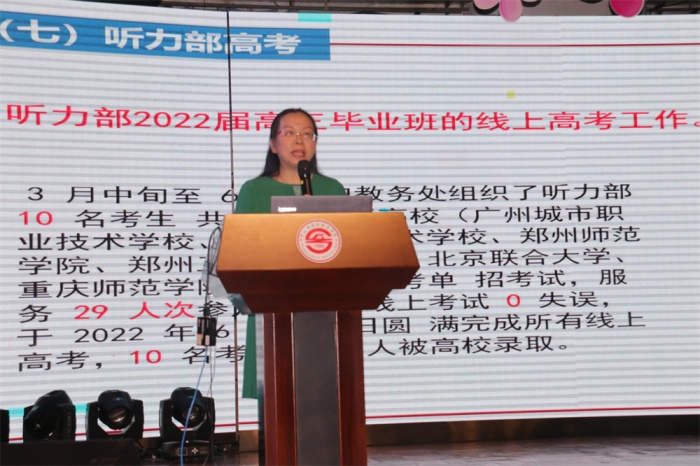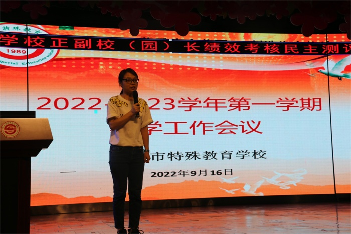陈云华副校长从校级各项评比、信息技术2.0、听力部高考等八个方面回顾了上学期的主要教学工作。她表示,在刚刚过去的一个学期,中山特校全体教师脚踏实地、锐意进取,谱写了踔厉奋发的辉煌篇章。她阐述了学校IEP工作的发展历程,点出目前IEP工作存在的问题和需进一步改进的方向。另外,下一步学校将继续夯实教研科研活动,注重研训结合;完善和规范教育体系,大力发展职业教育;优化协同教学模式,提升课堂教学质量。她希望老师们从“心”开始,从“细”着手,探索更多行之有效的教学方法,以崭新的工作面貌和务实的工作态度,为中山特殊教育事业挥洒青春和汗水,贡献智慧和力量。