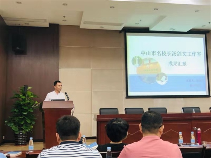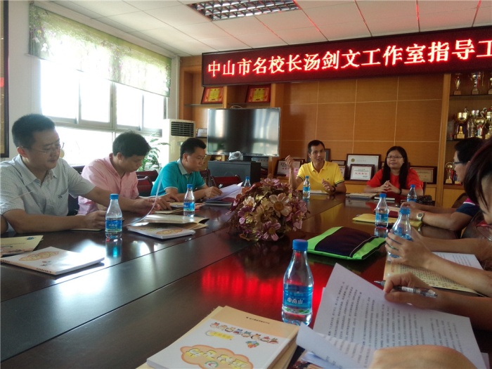 该工作室成立于2016年3月,在市名校长工作室管理办公室指导下,以及主持人汤剑文校长和一众学员共同推动下,成效显著。工作室以“互相学习、资源共享、共同提高、创新发展”为建室原则,以校长办学能力建设为核心,以提升校长办学思想为重点,开展活动坚持“五个一”:一书(理论专著)、一论(主题论坛)、一题(课题研究)、一看(观摩学习)、一诊(现场诊断)、一助(对口帮扶),在具体实践中,落实“三研”、“三实”的工作策略,使工作室成为名校长的“孵化器”、优质学校的“策源地”、经验、成果的“辐射源”,将成员校长培养成为新时代有能力、有思想、有担当的教育改革者、实践家,锤炼高素质的校长队伍。汤剑文校长充分发挥名校长的辐射作用,把科学的办学理念和先进的管理经验,以学术讲座、专题研讨、发展论坛等形式在学员所在学校进行推广,带动发展。进行办学思想凝练的专题辅导,在中山市名校长成果展示会上分享办学思想成果,带领学员将各自的办学思想和教育理念付诸文稿,2019年4月,编著出版的《校长论教:做有思想的教育者》由广东人民出版社出版。