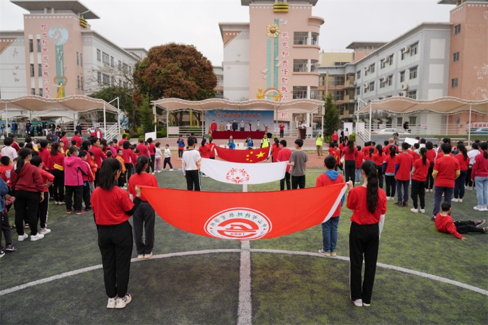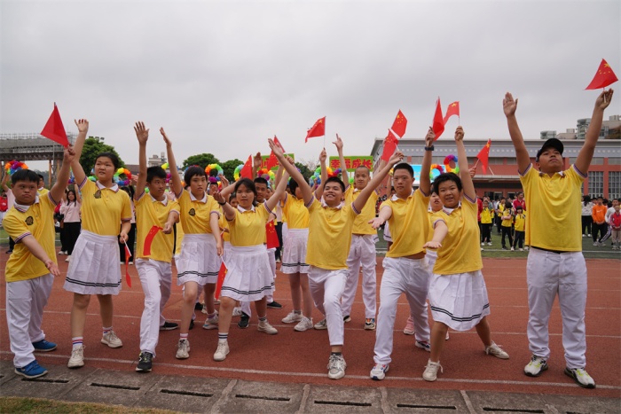入场式上,各年级进行创意编导,融入喜庆元素,传承红色基因,厚植家国情怀。师生或手执花环,或挥舞彩带,或身着盛装,或高举标牌,喊出了铿锵有力的气势,舞出了奋进新时代的风采。