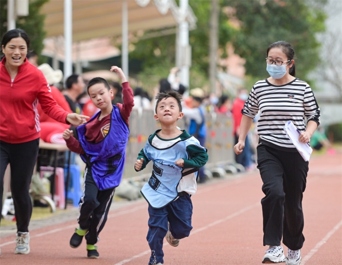 我参与,我阳光,我自信,我成长!在学校党总支书记、校长卢超文的宣布声中,本次比赛正式开始。运动会以人人参与、快乐共享为原则,从趣味性、互动性和安全性出发,根据学生的程度和体能水平,彰显人文关怀,设置了多个项目,如轮胎竞速、障碍跑、定点投篮、定点射门、垒球、地滚球、1分钟跳绳等,让孩子们有更多的体验机会。运动会还结合特殊儿童特点,无论是场景布置还是项目设置,都较以往进行了优化升级和精心设计。比如,赛场设置了终点“加油门”,门上6个颜色各异的数字对着6条跑道,各跑道学生穿上对应颜色的马甲参赛,既起到视觉提示的作用,又增强了仪式感和趣味性。校园内还布置了新颖有趣的摆拍区,集宣传、趣味、学习、拍照为一体,通过氛围的营造让学生爱上体育、爱上运动。再比如,游戏场地布置了“沙包九宫格”和“足球防守人”,非常受孩子们欢迎。另外,本次活动对部分项目做了调整,比如将800米、400米赛跑调整为200米,降低了运动强度,减少了体能消耗,保障了运动的健康安全。本次运动会还特别设有师生接力项目,师生齐齐上阵,在梦想的赛场上舒展身心、绽放快乐。