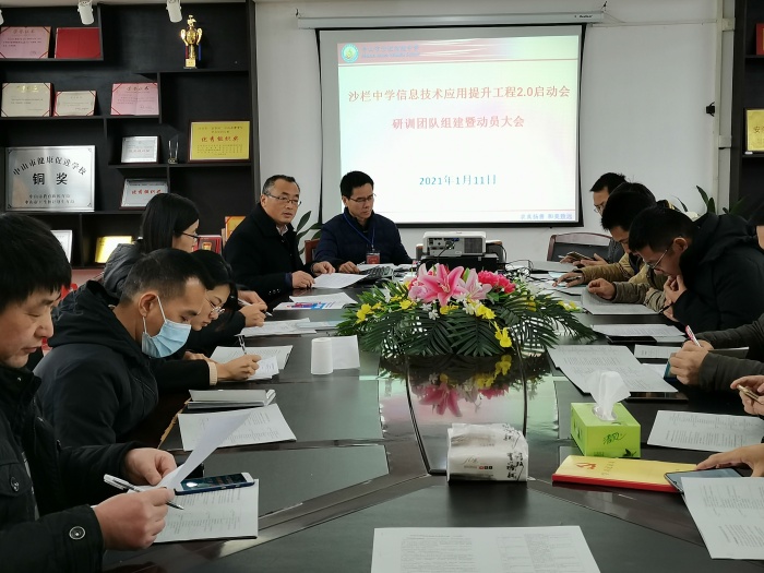 三角镇沙栏中学举行信息技术应用能力提升工程2.0启动暨管理团队动员大会发布时间:2021-01-17 09:38 信息来源:本网站 浏览次数:0