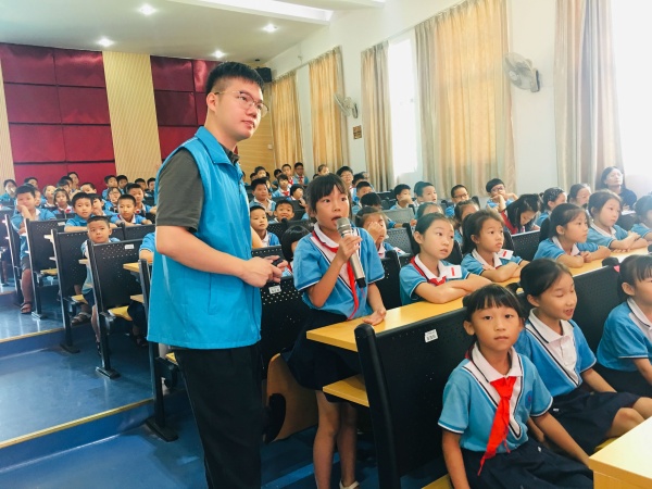 来自中山日报的林老师详细讲述可回收垃圾、湿垃圾、干垃圾、有害垃圾具体包括的内容,指导学生们认识各种垃圾分类的标识、了解垃圾不分类对环境、对资源利用造成的不利影响,在聆听学习中,大家明白了垃圾分类的重要性。