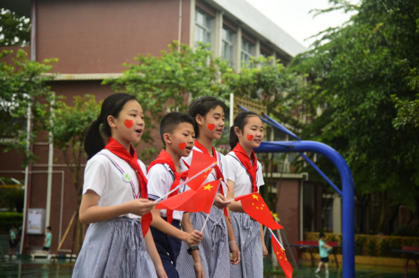早上,蒙蒙细雨中,森林平岚教室内外红一片,国旗队旗相辉映,1146名孩子献给祖国的誓言 “我是中国好少年,我在国旗下宣誓:我要听党的话,勤奋学习,锻炼本领,努力拼搏,为中华民族的伟大复兴而努力奋斗!”近三万平方米的校园里,全校师生动情地演唱起《我和我的祖国》,深怀对祖国无限的热爱和崇高的敬意。这声音感动了校园内外每一个闻声驻足的人。