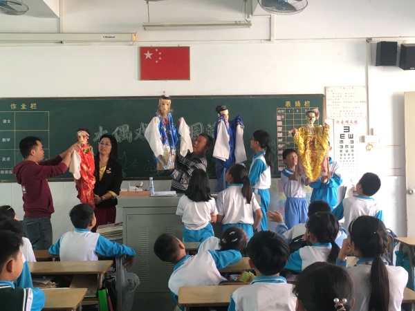 11月19日下午,尚古文化负责人张华森和三乡木偶戏推广人唐爷爷来到雍陌小学,为五(3)班的孩子上一节特殊的综合实践课。