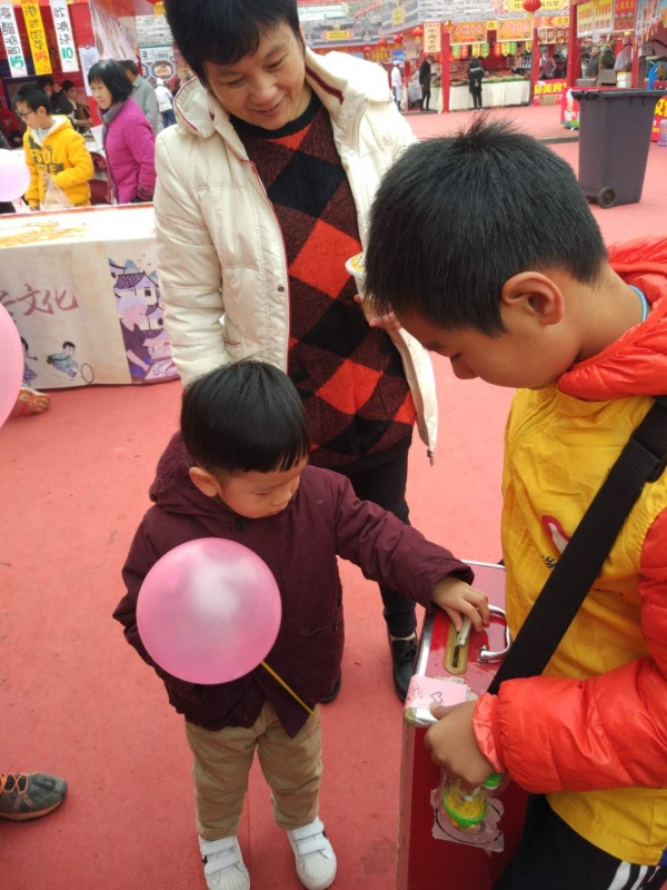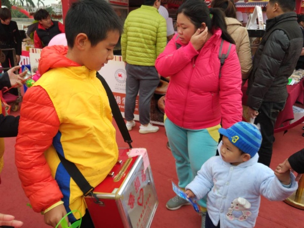小义工们抓准机会,一看见有亲子一起逛街的,迅速走到叔叔阿姨面前,游说家长们奉献爱心,给孩子做一个好榜样。小义工朋友们面带微笑,带着爱心,不断地去分享,不断地去传播,影响着身边每一位来美食节的家庭。