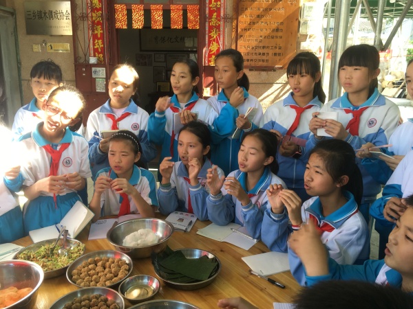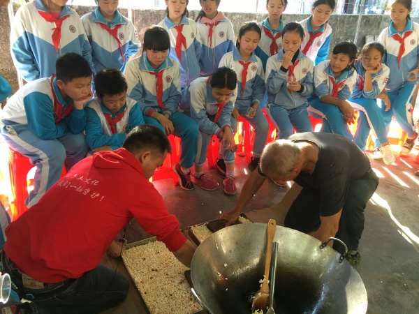 根据中山市少先队特色社团队伍建设指导意见,为进一步推动学校少先队特色社团队伍的发展,了解中华大地中的优秀传统文化,加强少年儿童综合素质培养。经向学校、镇少工委、镇文体教育局申报、审批,雍陌小学少先队特色社团于2018年12月21日下午,到三乡镇前陇村尚古传统文化传承基地进行了半天的乡土研学活动。课程有走访古村、传统三乡茶果制作、濑粉制作、木板刻印年画和通米制作。