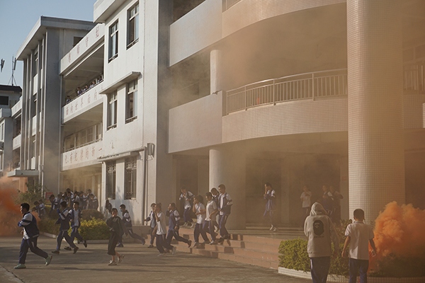 下午15:30,消防官兵在博爱中学校园拉响了演练预警声,全校师生在烟雾中安全、有序、迅速地从教室撤离到运动场。演练过程中,全体师生积极配合,合理应对,服从指挥,有条不紊地进行疏散,在最短的时间内,安全有序、镇定快速地到达操场集合地点。体现了师生在危险情况下相互关怀、相互合作精神,增强了博爱人的凝聚力和向心力。紧接着,消防官兵为学校师生展示了逼真的灭火救援演练。