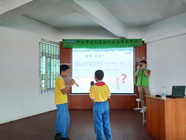 本次活动由德育处承办,熊钧俊主任担任主持人,特别邀请到三乡镇禁毒办的专职禁毒社工前来主讲。社工对毒品知识进行了详细的讲解,分别从:毒品分类、毒品危害、新型毒品、当前毒情、校园预防毒品犯罪等方面进行了讲解,并且通过相关图片和视频介绍,让学生更加直观地认识毒品及了解毒品危害。社工还与现场的同学互动交流,进行了禁毒知识抢答、情境模拟表演等环节。在场同学们个个专心听讲,积极参与。通过学习,同学们进一步认识到毒品的危害,自觉增强了珍爱生命、远离毒品的意识和能力。最后,社工陈老师带领全体同学进行宣誓,保证以后不吸毒,不种毒,不贩毒,做一个文明的好学生。