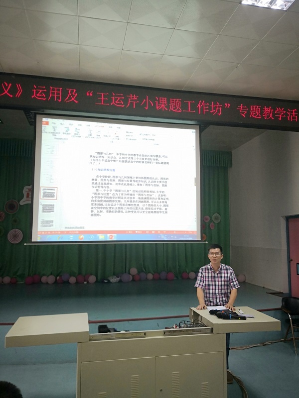 王运芹老师还围绕四大领域中的“图形与几何”领域,研读了小、初、高数学教材,从知识点分布、内容衔接、价值取向、目标界定等方面解读了基于课程标准的义务教育数学教材和高中数学教材,并提出了基于教材内容衔接的小学数学教学启示和教学建议,让与会老师拓宽了视野,提高了认识。
