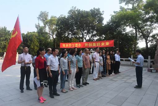 9月29日下午,在中国烈士纪念日前夕,为贯彻落实中共佛山市委“不忘初心、牢记使命”主题教育领导小组办公室《关于在“不忘初心、牢记使命”主题教育中开展“礼赞新中国奋进新时代”》的文件精神,落实“按照就近原则组织党员到我市红色遗址开展革命传统教育”的文件要求,中共佛山市顺德区教育发展中心总支部委员会组织全体在职党员到顺德革命烈士纪念碑开展祭奠革命先烈活动。