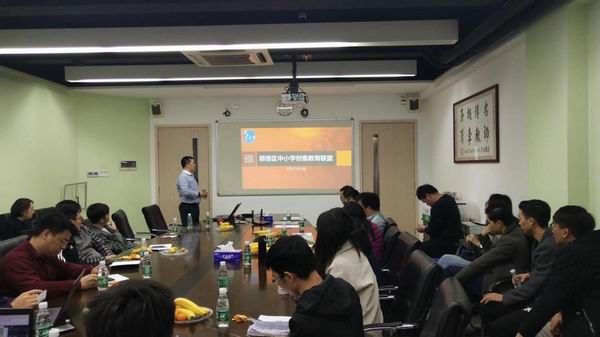 会中,区教育发展中心装备与信息化室蔡海辉老师就目前全区开展中小学电脑制作活动的情况进行总结汇报,并对我区今后的科创工作作出了部署,对参会老师提出了新要求,以积极的态度和饱满的热情投入到创新创客教育中,并积极在各自镇街做好宣传、指导工作。