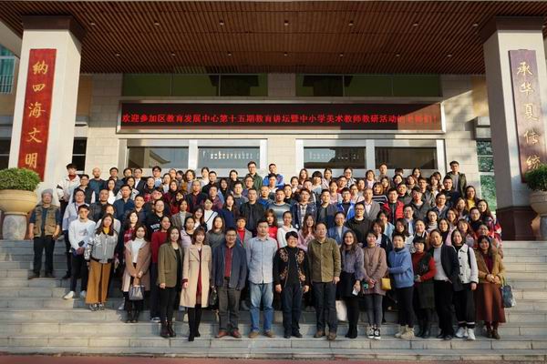 2019年12月27日下午,容山中学集贤楼报告厅济济一堂,来自全区中小学220多名美术教师以及区教育发展中心教师发展研究室主任唐信焱、副主任吴海坚,区美术教研员王育群老师齐聚这里,参加了一场别开生面的美术教研活动。活动由顺德区教育发展中心、顺德区名师工作室建设项目管理办公室主办,顺德区容山中学、顺德区刘磊名师工作室承办,容山中学侯柏羽老师担任活动主持。