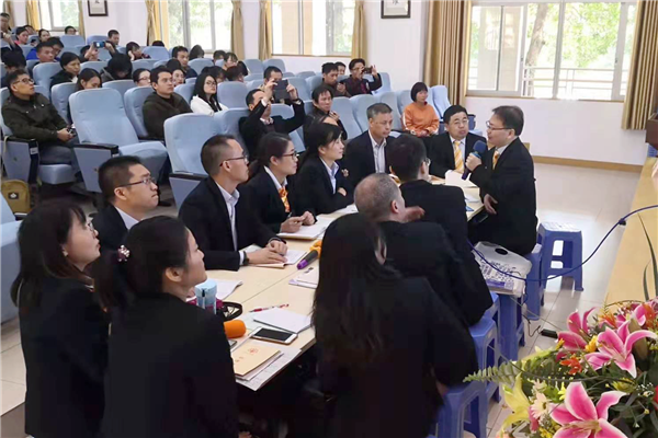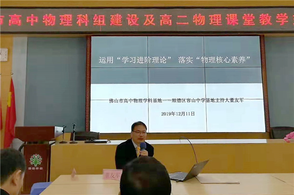 为更好地落实“立德树人”的根本任务,主动适应我国教育教学及高考改革的新趋势,实现新课标教学目标在课堂教学中的落地,切实提升学生的核心素养,2019年12月11日,佛山市高中物理科组建设及高二物理课堂教学交流研讨活动于我校隆重举行。佛山市教育局教研室朱建平主任、云浮市教育局教研室黄国颖主任、广东教育出版社朱梦华编辑以及佛山市、云浮市各校物理学科教师200多人参加了本次活动。