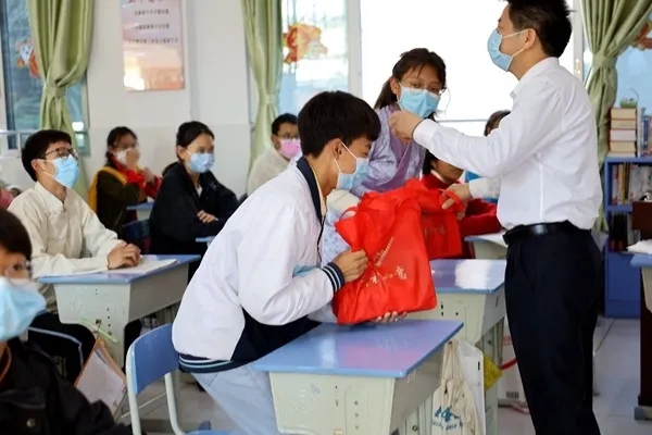 正值藏历新年,彭聪恩特地前来看望江义中学西藏班师生,向藏族学生致以诚挚的节日问候,勉励学生不忘党恩、听党话、跟党走,勤奋学习,将来以实际行动报效祖国。彭聪恩看到西藏班的学生个个阳光向上很高兴,嘱咐全体学生按学校的要求继续做好个人防护。随后,彭聪恩向西藏班学生代表赠送了防控物资。