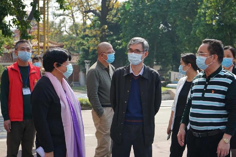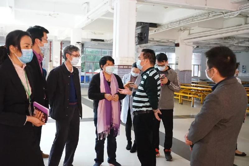 顺德区副区长、容桂街道党工委书记刘国兴(右3)等领导到容山中学检查疫情防控工作