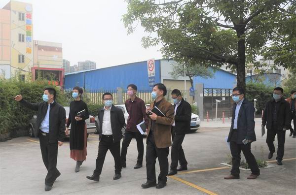 彭聪恩区长(左一)视察环境,关心教师发展中心建设等工作