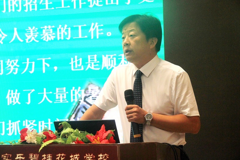 贺总首先介绍了我校暑假期间教师培训、招生、夏令营、毕业游、校园翻新等工作的相关情况,并回顾了过去一年里博实乐教育集团的发展变化,总结了过去一年碧桂花城学校所取得的骄人成绩。这些成绩让全体教职员工倍受鼓舞,深感骄傲。